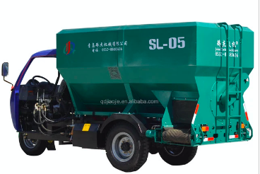 Máy chạy dùng điện ác quy hoặc đông cơ diesel, dung tích bể trộn 2 m3, tốc độ trộn 15 phút mẻ, mỗi mẻ 1 tấn, 2 cửa xả thức ăn. máy trộn đều, khoẻ.
